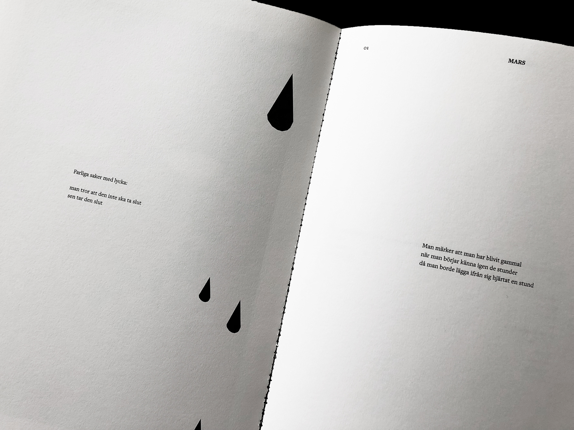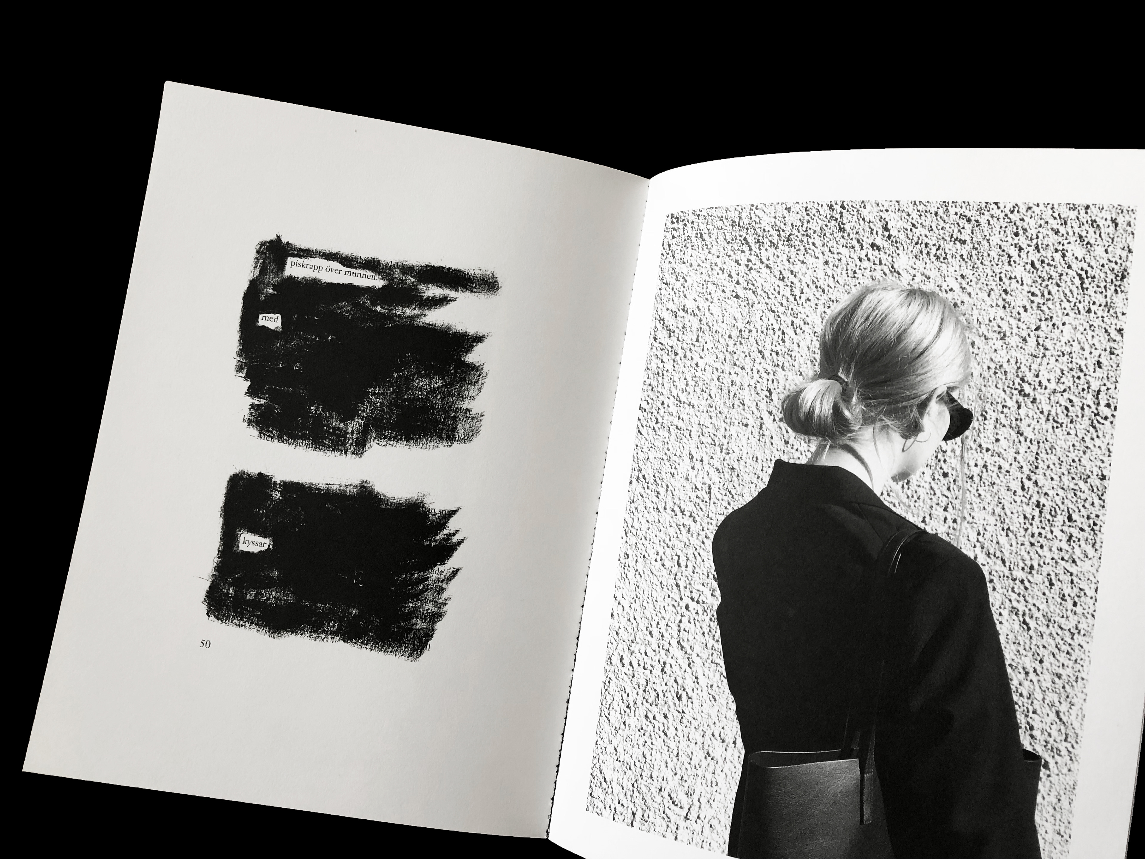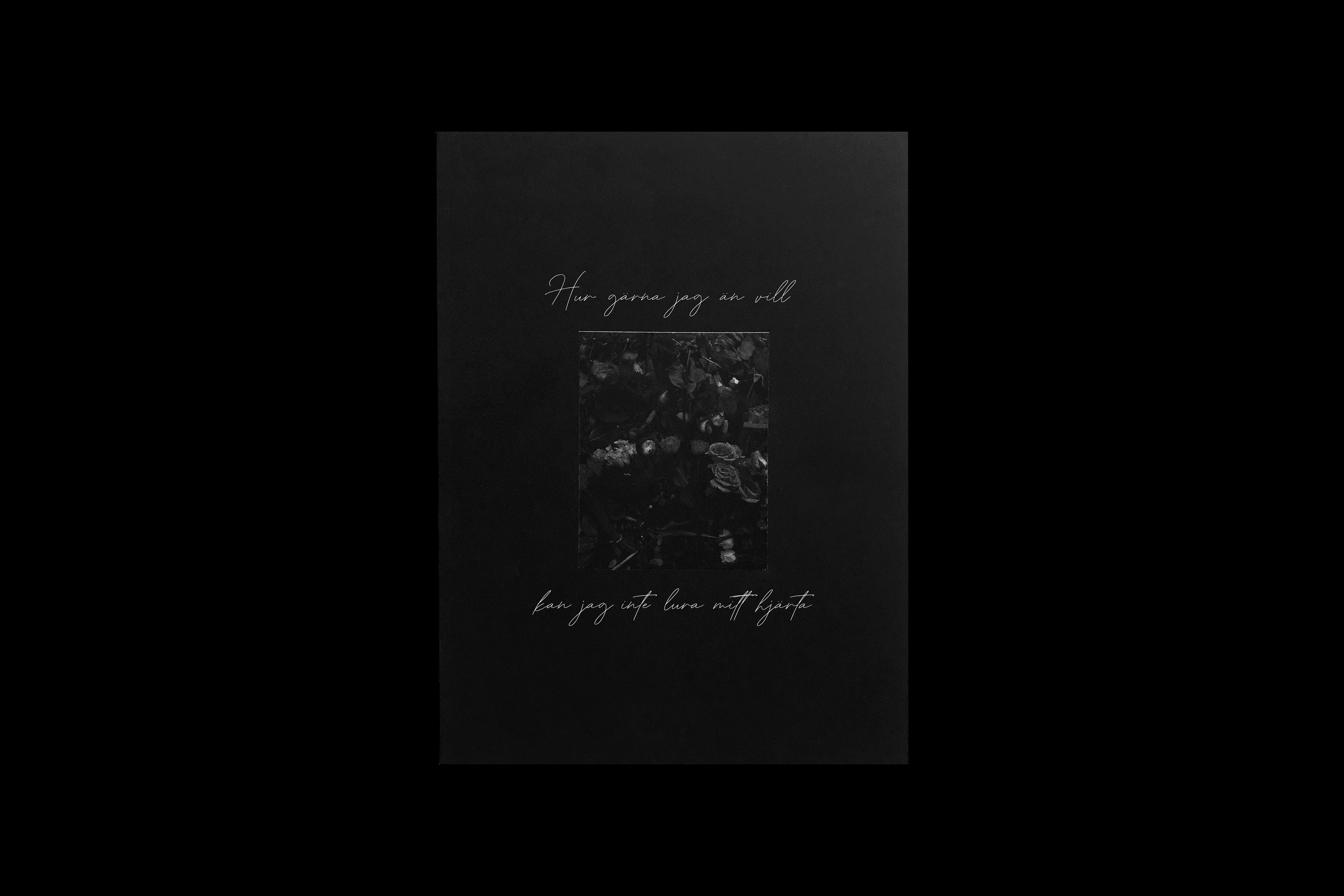 Examensprojekt. Omslag, illustrationer, bilder och layout av mig. Text av Mathilda Lindblom. Specifikationer: Mjukt omslag; Colorit Black 270g med monterat klistermärke. Inlaga; Mohawk Extrarough Ultrawhite 175g. 200x270 mm. 88 sidor.
